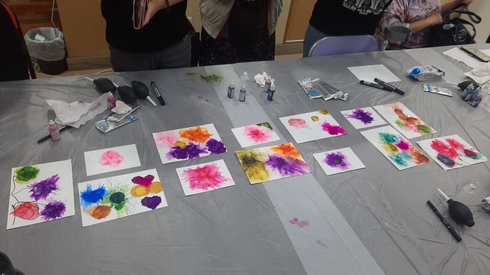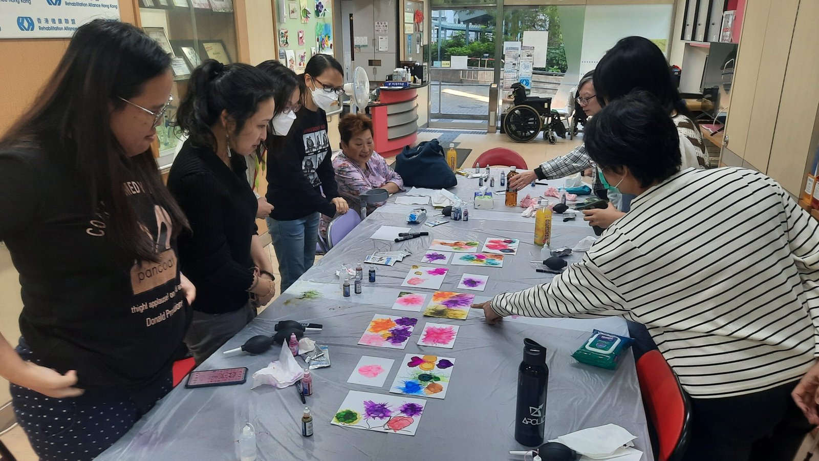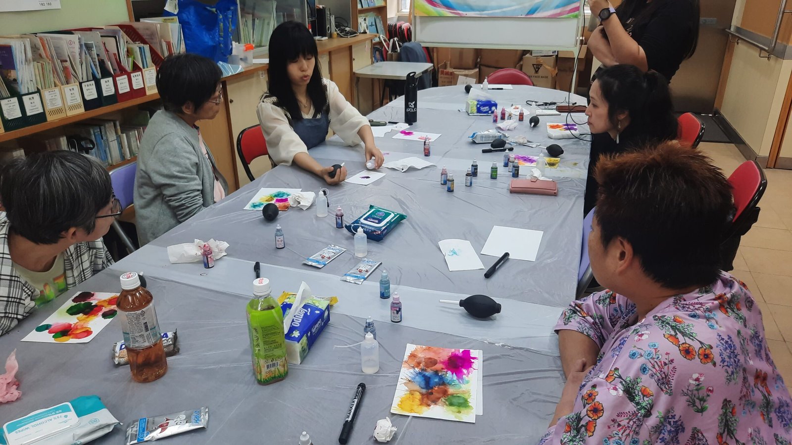 工作坊由乐历培训的酒精墨水画导师Candy,教授会员学习酒精墨水的知识和技巧,例如如果把墨水向外散开、运用墨水制作流苏、呈现颜色深浅等,参加者在导师的指导下,掌握不同的技巧,并运用自己的创意和想法,制作出不同的图案,如自由自在地游泳的金鱼、展现无限生命力的花朵、让人感到温暖的太阳、充满圣诞气氛的圣诞花环等。